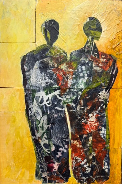 Synery features a striking bold yellow design highlighting two figures, creating a powerful visual impact. This artwork captures dynamic interaction through vibrant color and confident composition, making it an eye-catching statement piece suited for modern interiors or creative spaces. Its vivid yellow hue energizes any room, while the depiction of two people invites connection and interpretation.