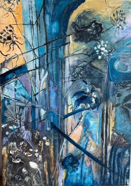 This striking abstract artwork features a captivating interplay of deep blue tones that draw the viewer into a contemplative visual journey. The dynamic brushstrokes and layered textures create a sense of depth and movement, evoking the mysterious allure of looking through a window into an unknown space. Ideal for adding a sophisticated focal point to any interior, this piece invites thoughtful reflection and a serene atmosphere.